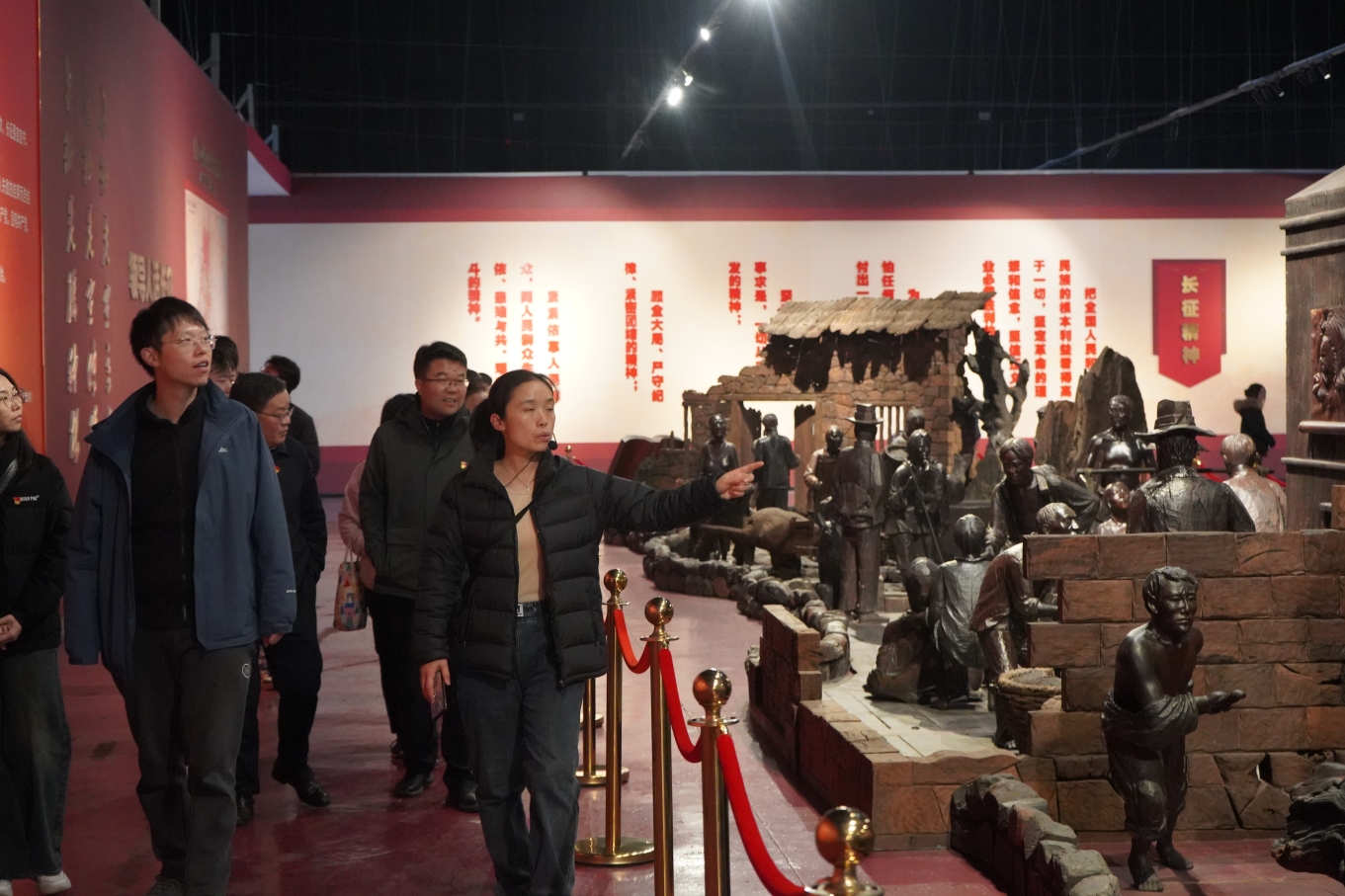 天意木国红军长征根雕馆内,一件件巧夺天工的根雕作品生动刻画了从湘江血战到遵义转折,从雪山草地到胜利会师的长征史诗。每一幅作品都凝聚着革命先辈的坚韧与无畏。党员们驻足凝视、认真聆听讲解,在红色艺术的熏陶中回顾往昔艰辛历程、磨砺铸炼党性。