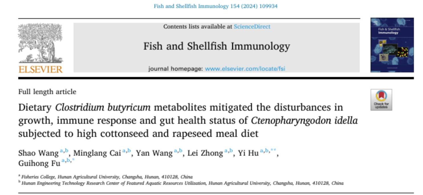 近期,湖南农业大学水产学院符贵红副教授在《Fish and Shellfish Immunology》上相继发表多项研究成果,系统探讨植物源免疫增强剂与丁酸梭菌代谢产物在水产健康养殖中的应用效果与机制。