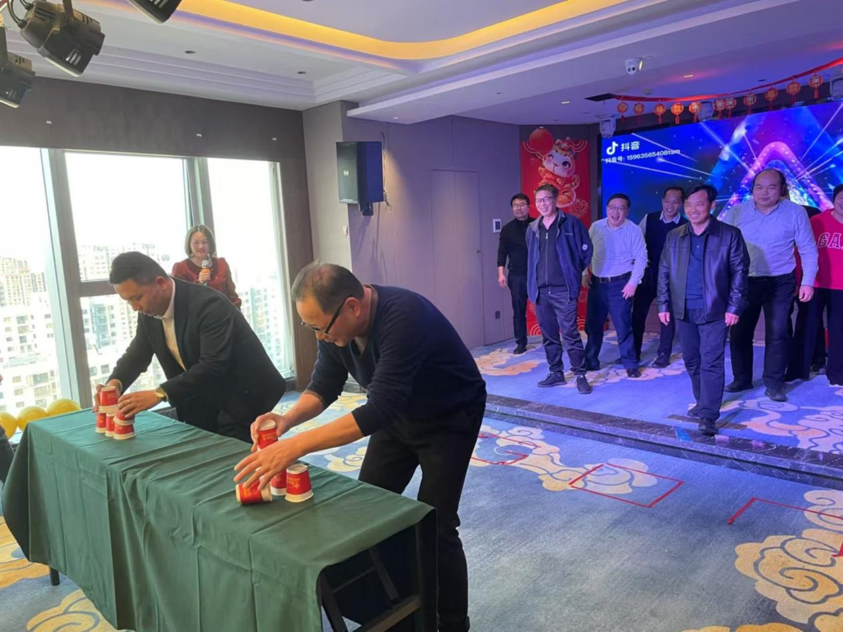 在学院2024年的回顾快闪视频后,由各工会小组老师编排的歌舞、朗诵、小品等各式各样的精彩节目轮番上阵,歌舞齐聚、妙语连珠。精彩的节目间穿插了抢水大战、蒙眼踏步、叠杯接龙等小游戏,参赛老师们的比拼十分激烈,引起现场阵阵欢呼。