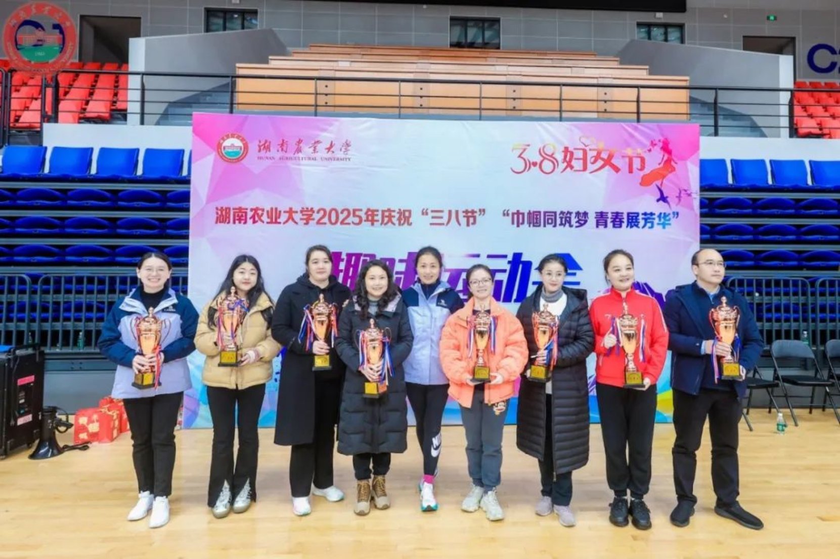 经过下午的激烈角逐,水产学院捧回三等奖奖杯。这次活动不仅是对“三八”妇女节的特别献礼,更展现了水产人团结奋进的精神风貌!努力永不散场,拼搏永不止步!这场充满欢笑与感动的春日盛会,将团结协作的种子深植在每个水产人心中!