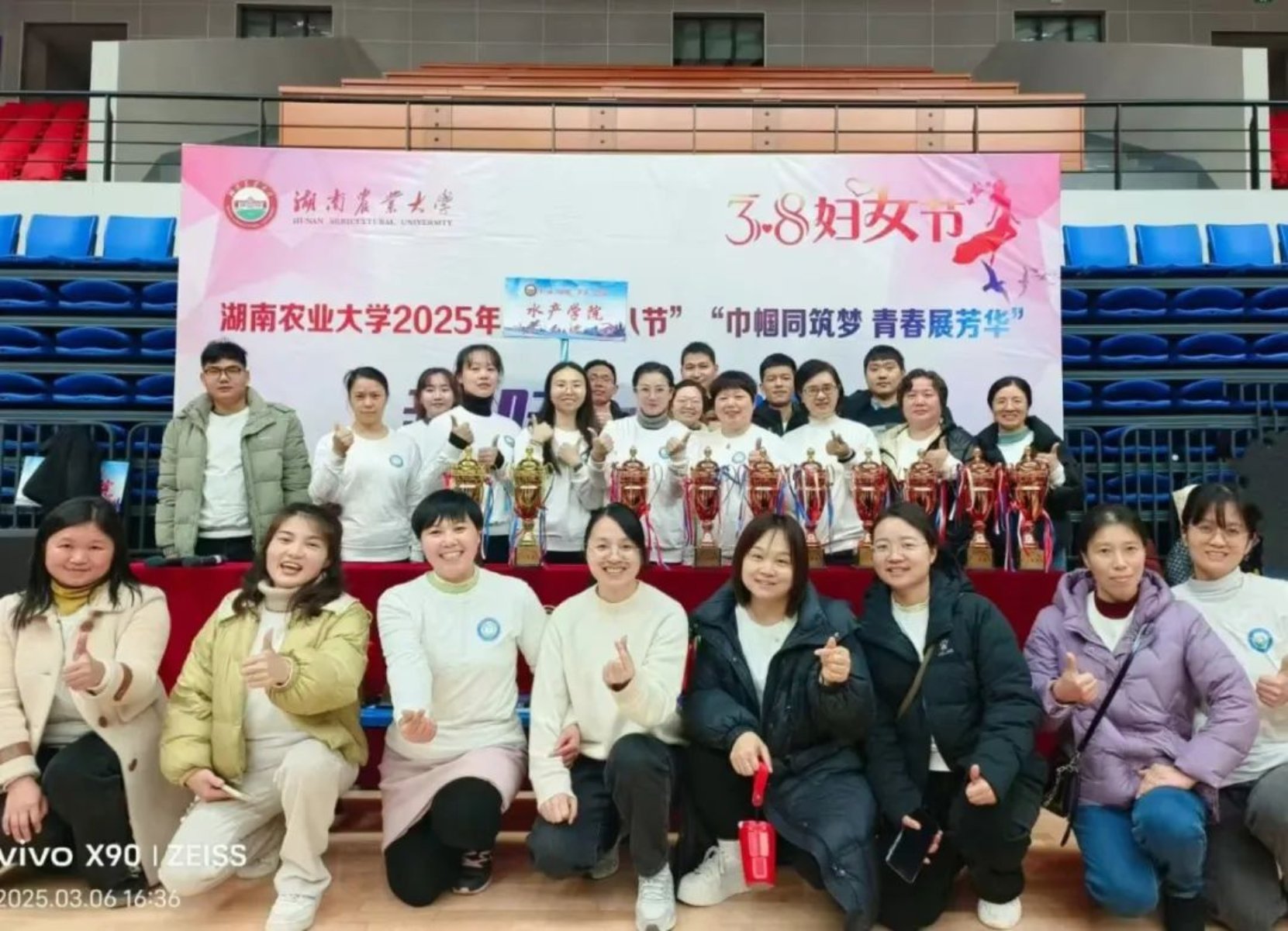为庆祝第115个“三八”国际劳动妇女节,3月6日下午,湖南农业大学在新体育馆举办"巾帼同筑梦 青春展芳华"主题趣味运动会。水产学院代表队奋勇拼搏,斩获三等奖!