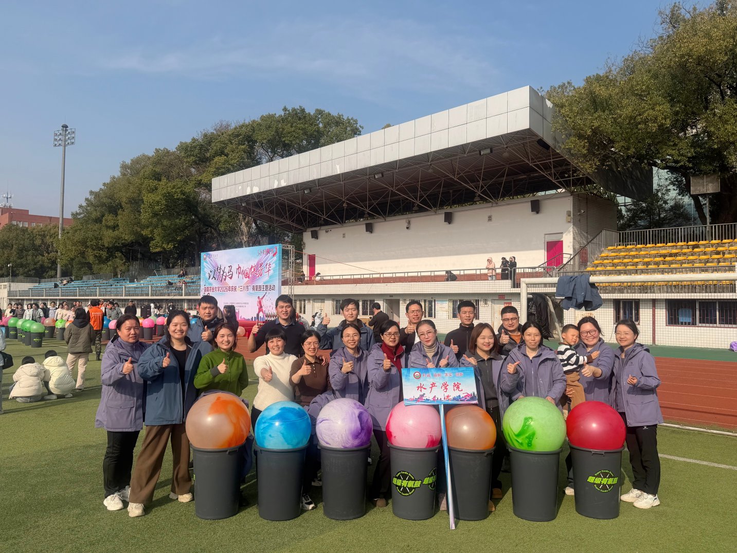 为庆祝第116个“三八”国际劳动妇女节,丰富教职工业余文化生活,展现新时代女教职工昂扬向上的精神风貌,3月5日下午,湖南农业大学2026年庆祝“三八节”“以梦为马 巾帼绽芳华”超级有氧鼓趣味活动在学校东田径场举行。水产学院积极组织教师参加活动,在比赛中团结协作、奋勇拼搏,最终荣获团体二等奖的优异成绩。