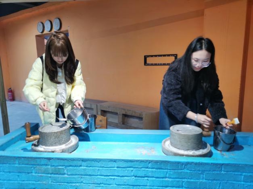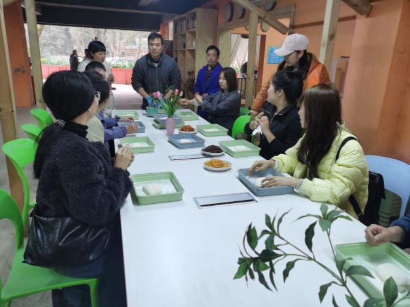 活动在轻松愉快的氛围中拉开帷幕。老师们抵达山鹰潭实践基地后,在工作人员的引导下进入休闲区域围炉煮茶,稍作休整后分组参与丰富多彩的体验项目。活动内容包括草坪趣味拓展、窑炉烤面包、手工郁金香制作、非遗漆扇体验以及石磨豆浆等多个互动环节。在草坪趣味拓展活动中,老师们卸下往日工作的疲惫,尽情享受春日的畅快欢笑,也充分地感受到了团队协作的重要性,大家在手工和美食制作过程中既领略到传统文化的魅力,也体验到劳动与创造带来的乐趣。