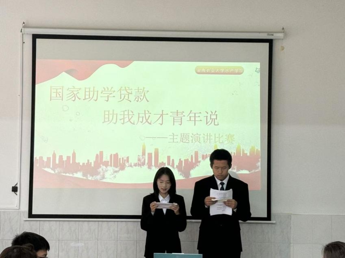 2024年10月28日,湖南农业大学水产学院在二教221举办“国家助学贷款,祝我成才青年说”主题演讲比赛。水产学院杨雄老师、何玲老师出席本次比赛。