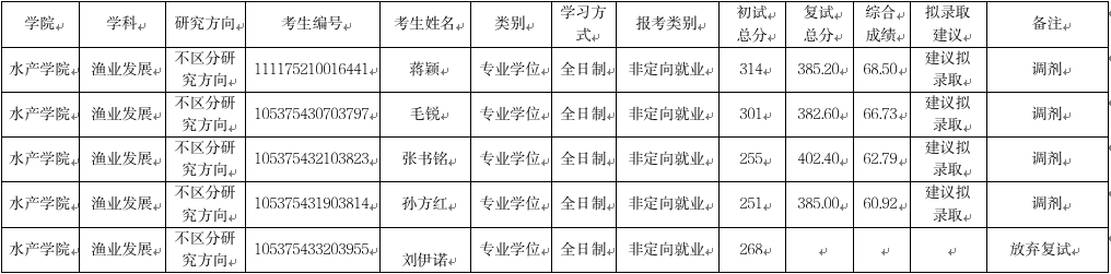 备注:综合成绩由初试成绩和复试成绩组成,其中初试成绩权重为60%,复试成绩权重为40%,综合成绩=初试成绩(折合成百分制)*60%+复试成绩(折合成百分制)*40%。