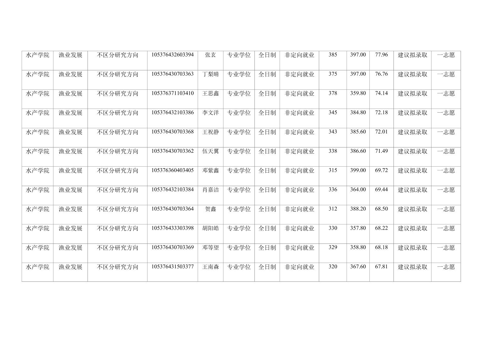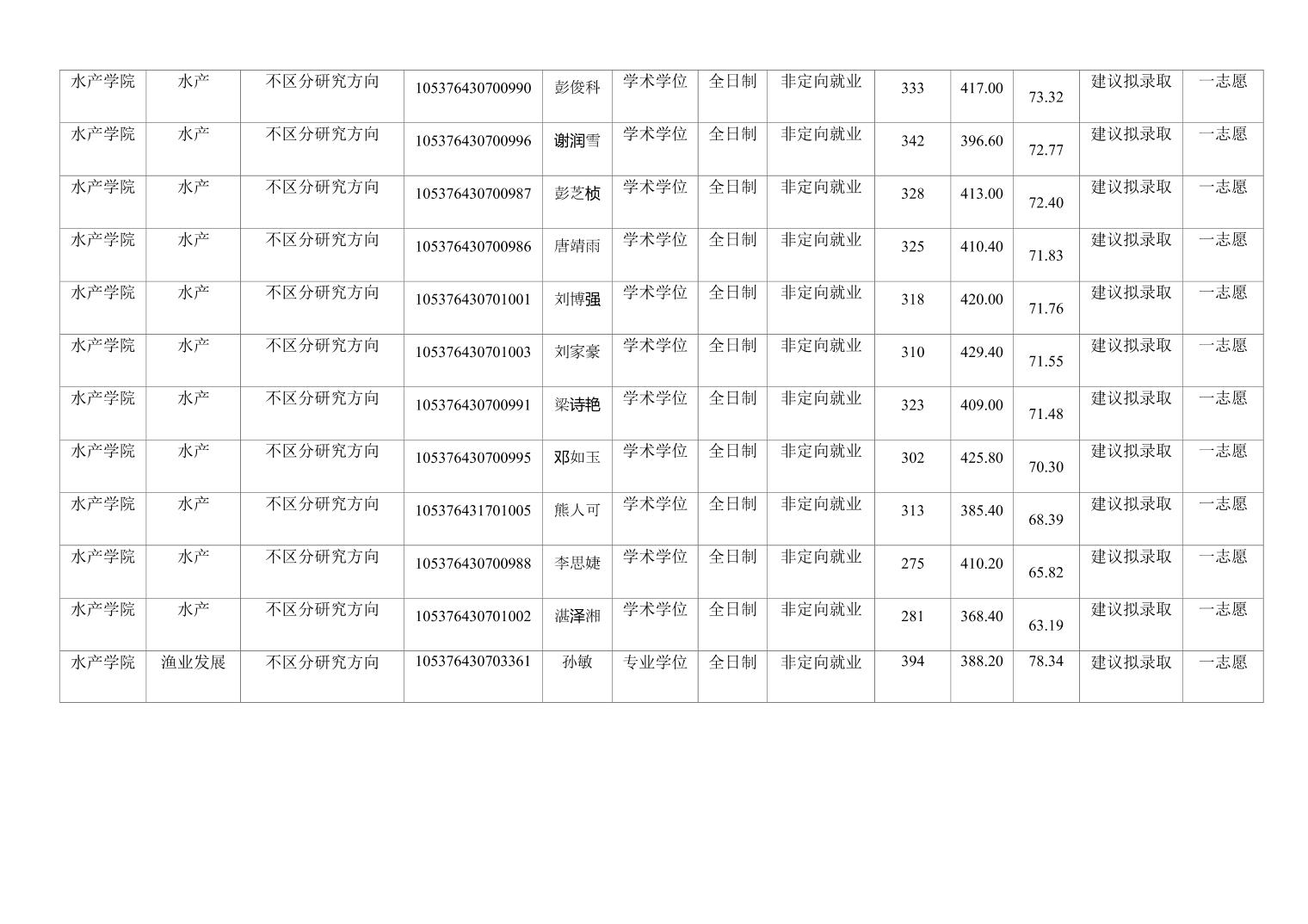 水产学院2023年硕士研究生复试成绩...