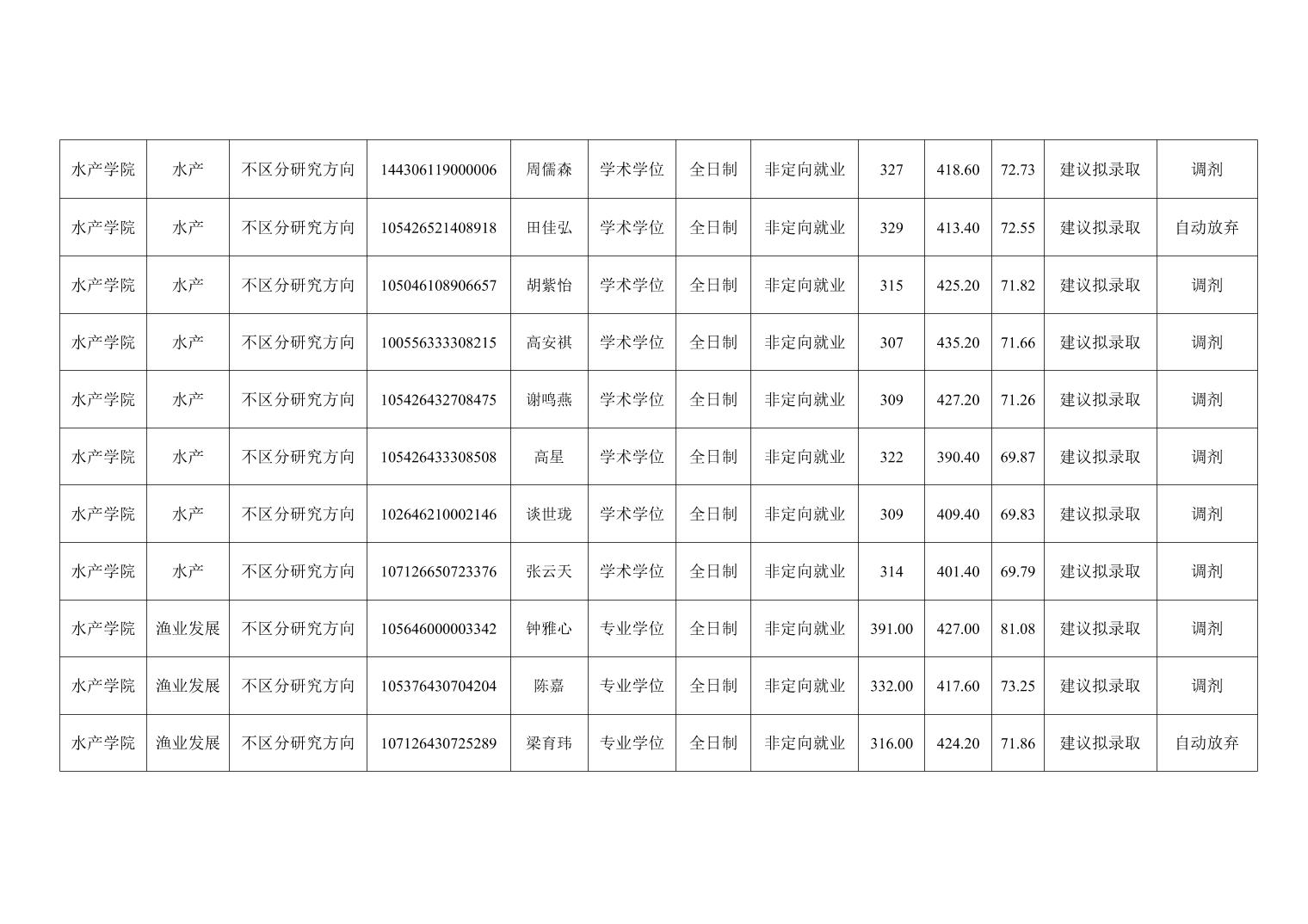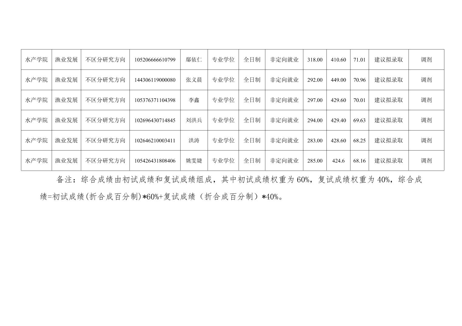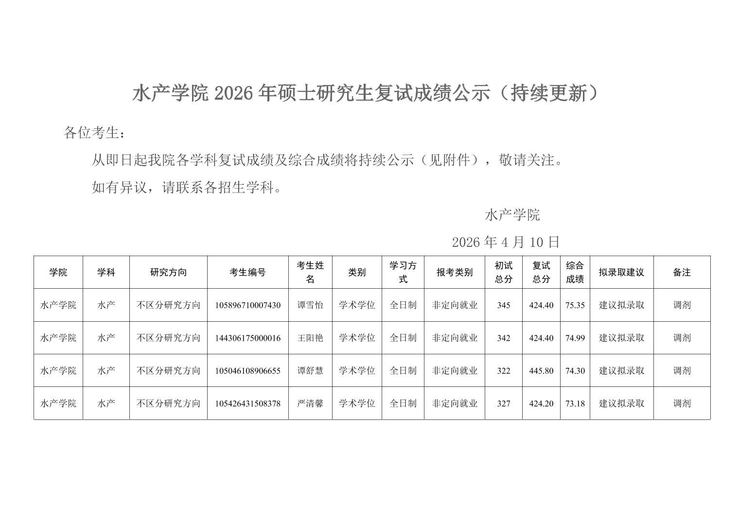 水产学院 2026 年硕士研究生复试成绩公示(持续更新)