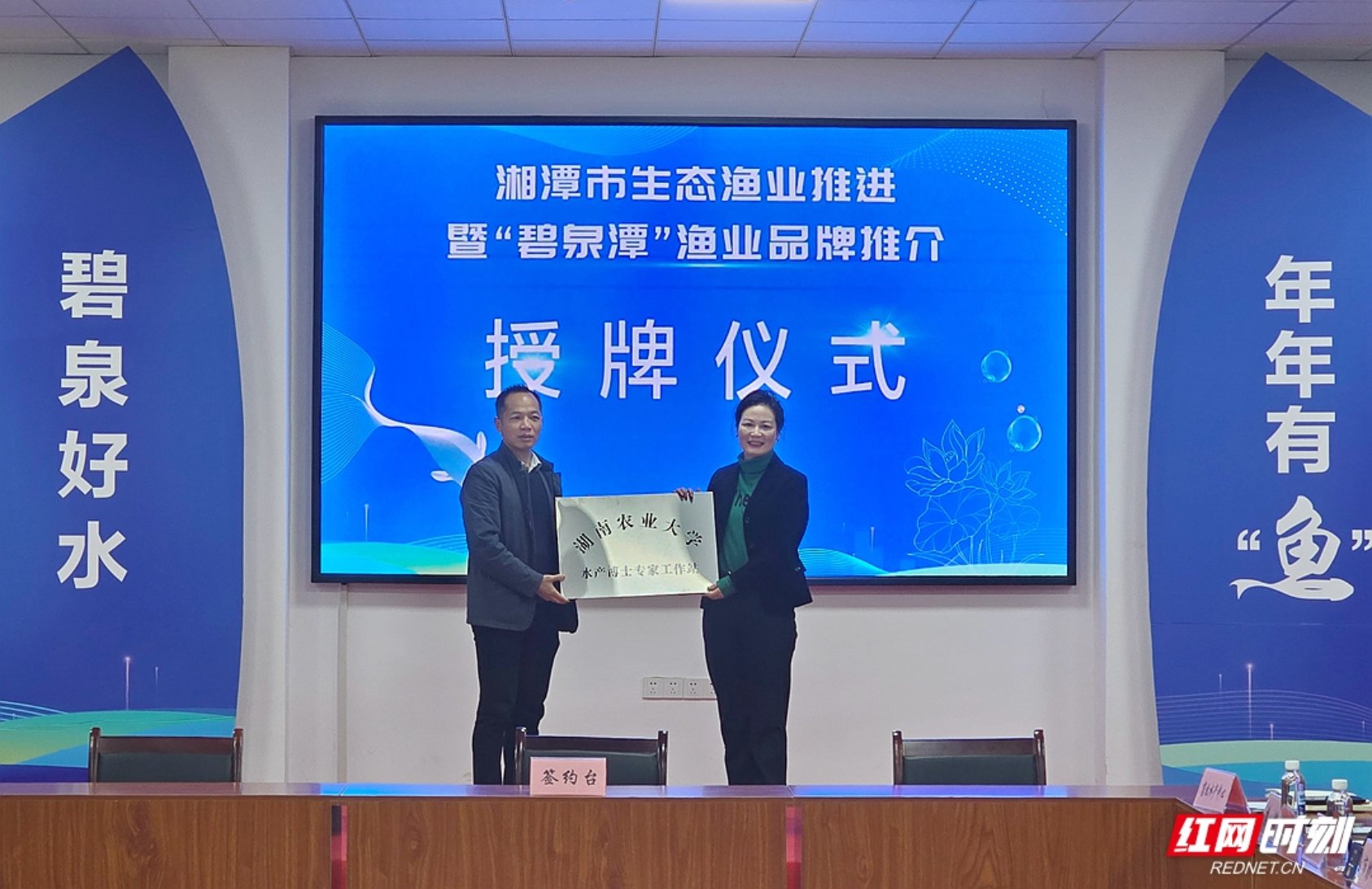 1月8日,湘潭市举行生态渔业推进暨“碧泉潭”渔业品牌推介活动。湘潭市委副书记、统战部部长吴志雄,湖南省畜牧水产事务中心主任张志龙,副市长陈爱民,湖南农业大学水产学院李军华副院长、李鸿教授等出席活动。