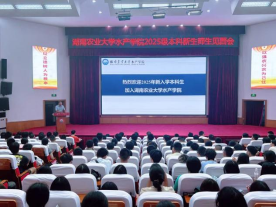 2025年9月17日上午,湖南农业大学水产学院2025级新生入学师生见面会在修业讲堂举行。水产学院全体院领导、各系主任、新生辅导员、班主任、企业班主任代表及2025级全体新生共同参加了本次活动。