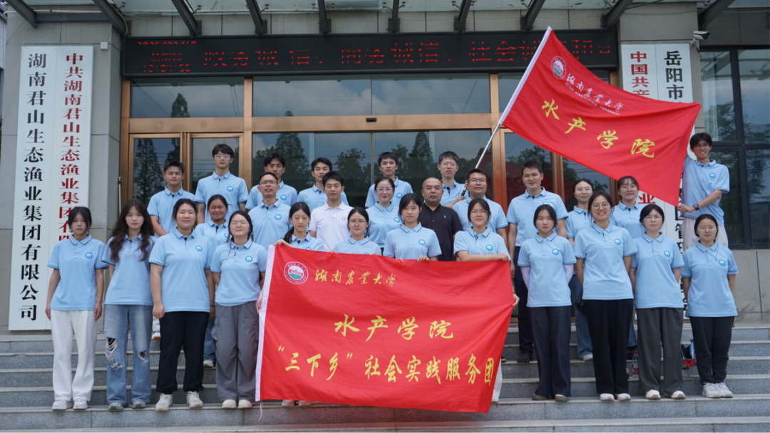 近日,湖南农业大学水产学院28名师生赴岳阳君山等地开展暑期“三下乡”社会实践活动。团队先后深入君山生态渔业集团、六门闸风干鱼科技园、湖南童记三利和食品有限公司、江豚科研救助基地、湖南开天新农业科技公司等企业和乡镇,系统调研智慧渔业基地的物联网监测、大数据分析技术应用、水产品加工和全产业链模式及渔业资源保护等,探索科技驱动产业转型的创新路径。