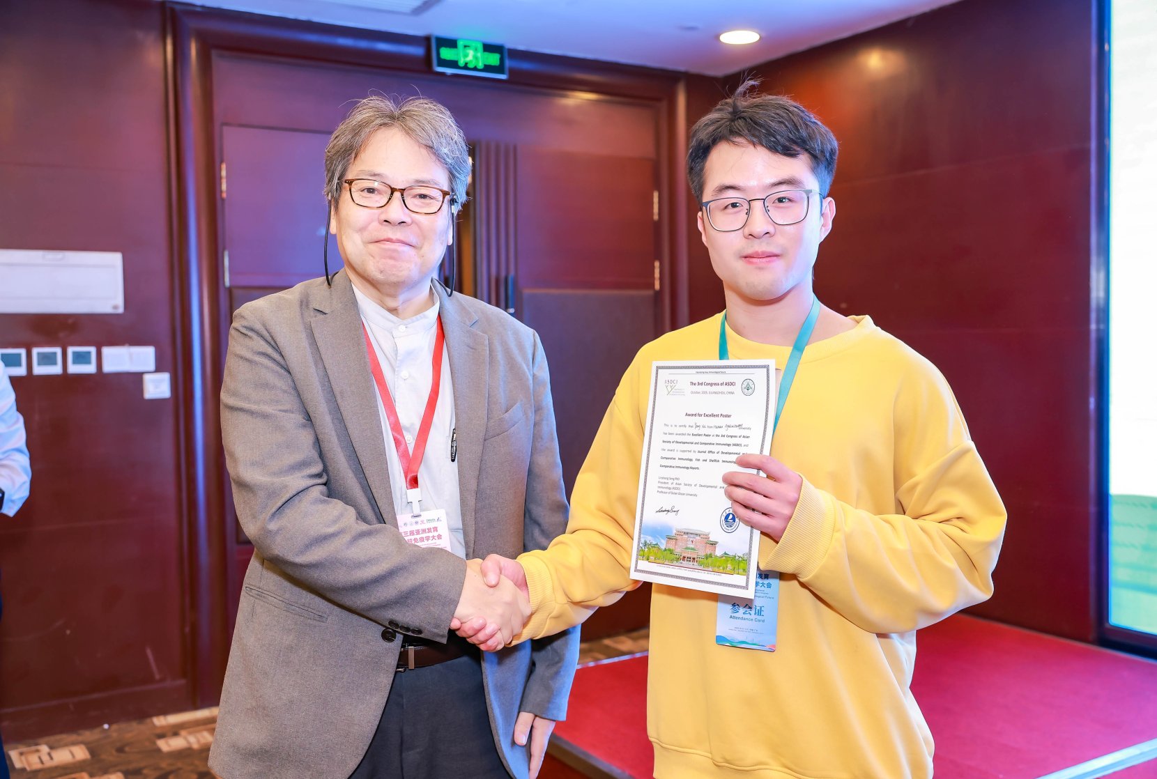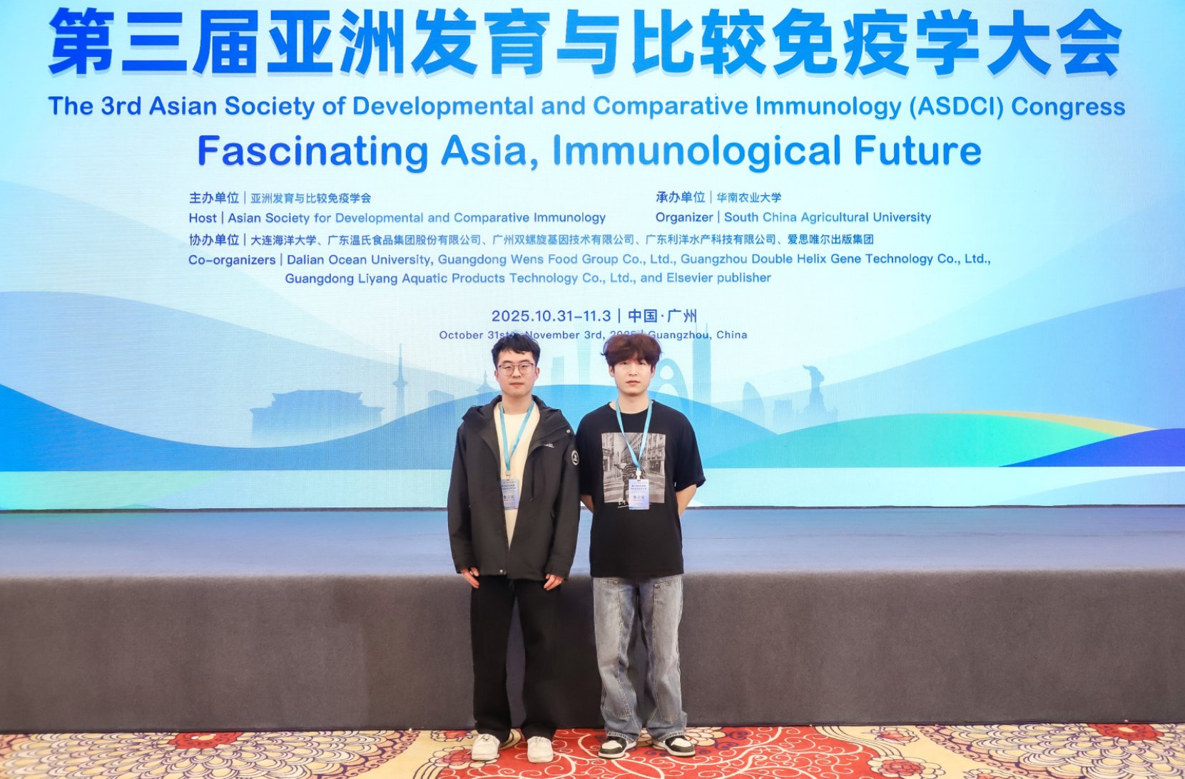 10月31日至11月3日,“第三届亚洲发育与比较免疫学大会”在广东省广州市成功举办。本次大会由亚洲发育与比较免疫学会主办,华南农业大学承办,大连海洋大学等单位协办,共吸引了来自国内外的500余名科研人员参与。我院赵祥教授、胡亚洲副教授、以及研究生徐杨和王威参加了本次会议。