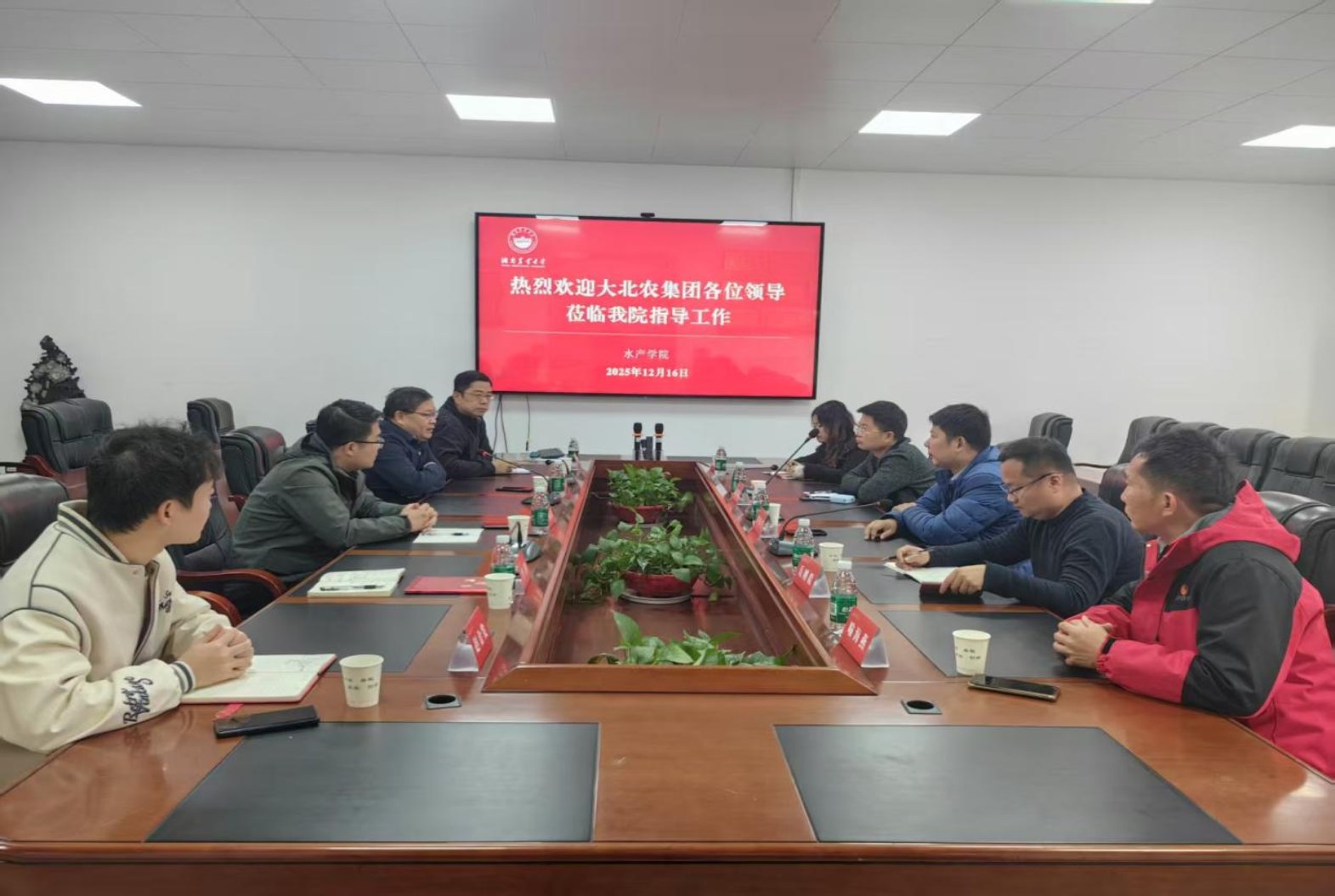 12月16日,大北农水产科技集团总裁助理兼湖北水产总经理李香平、湖南水产总经理岳刚毅等一行莅临湖南农业大学水产学院,与学院老师就水产行业未来发展、校企协同育人及产学研深度融合等议题展开了深入交流。水产学院院长李德亮、党委书记戴荣四等学院代表热情接待并出席会议。会议由李德亮主持。