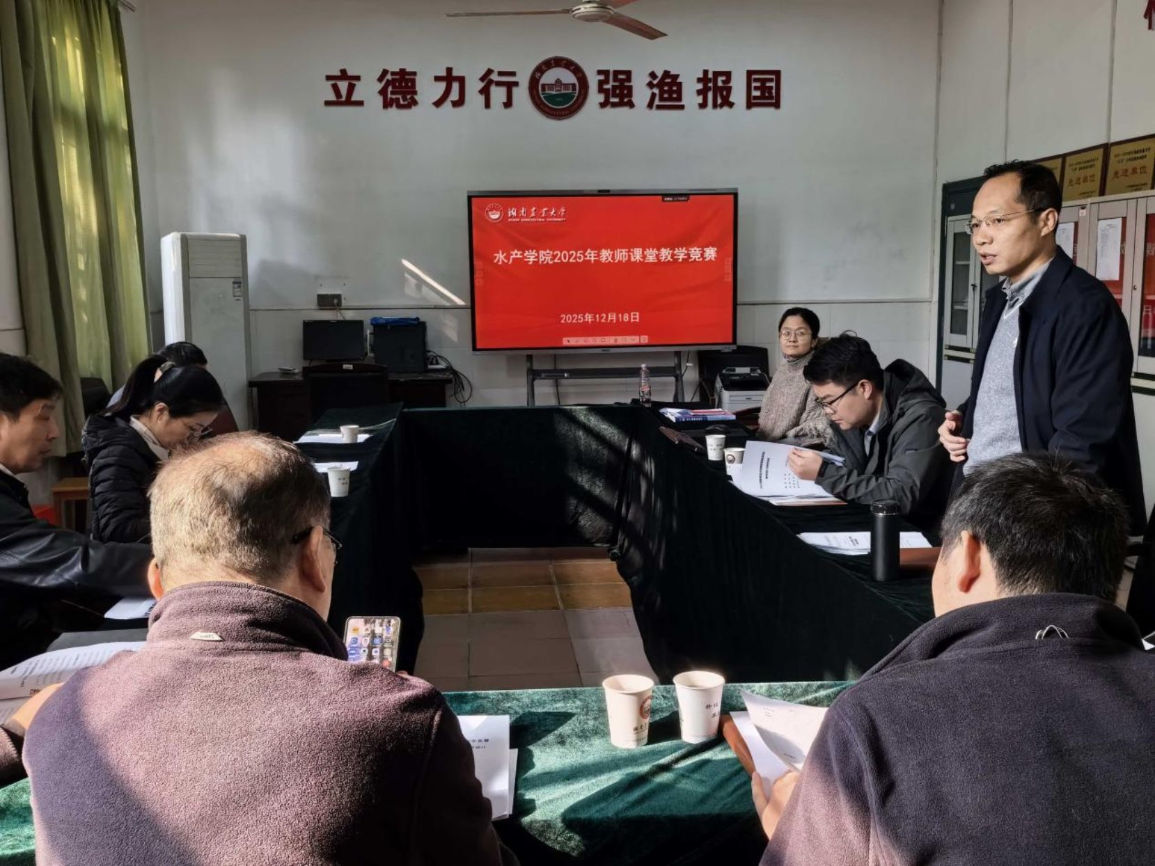为深入学习贯彻习近平新时代中国特色社会主义思想和党的二十大精神,切实提升课堂教学质量,充分发挥课堂教学主渠道作用,不断提高课程育人成效,水产学院于2025年12月18日上午在第二教学楼219室举办了2025 年教师课堂教学竞赛活动。本次活动由李军华副院长主持,学院领导班子成员、教学督导、教学基层组织负责人、教务秘书参加了此次活动。